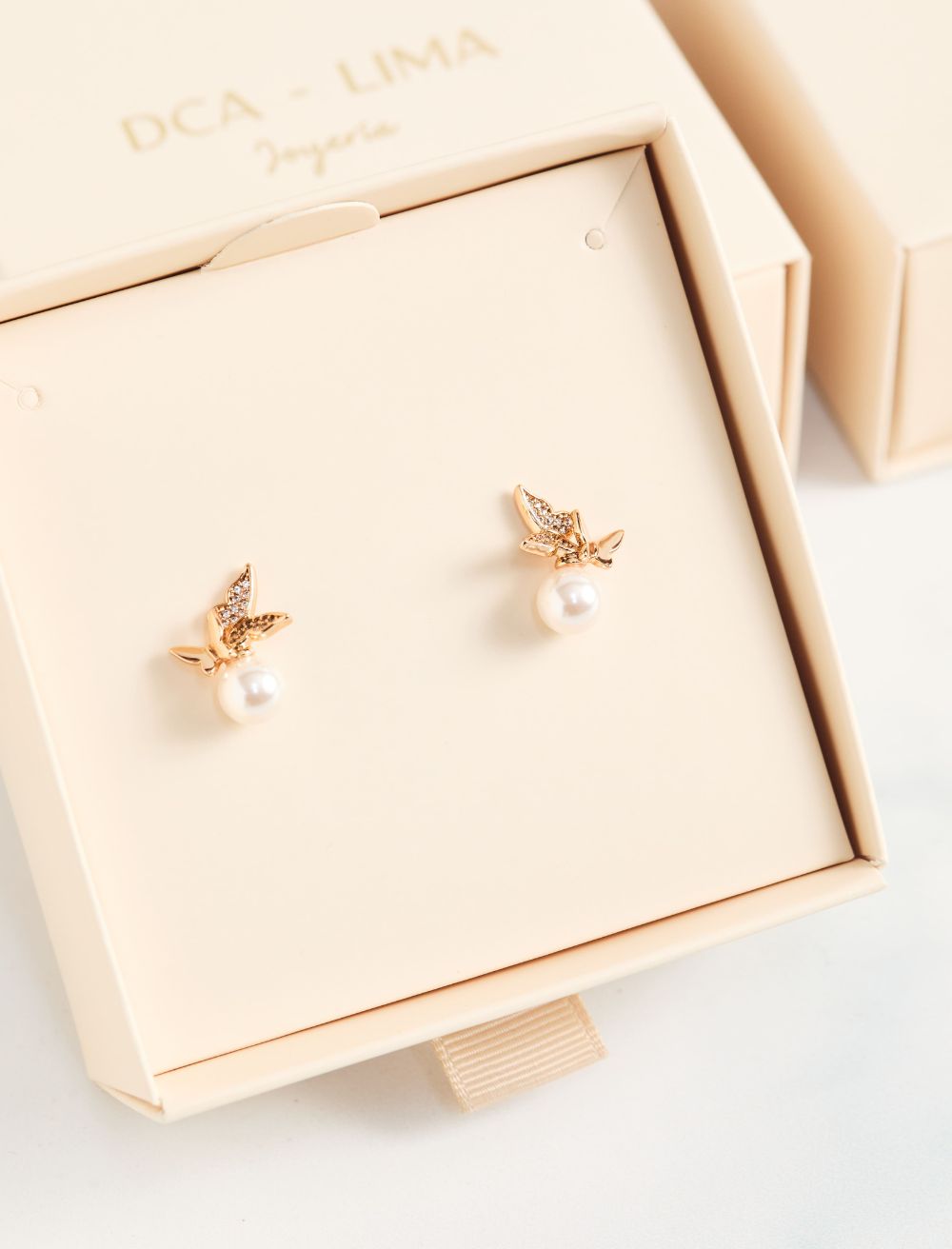ARETES ELEGANTES DE PERLA Y AVE DORADA