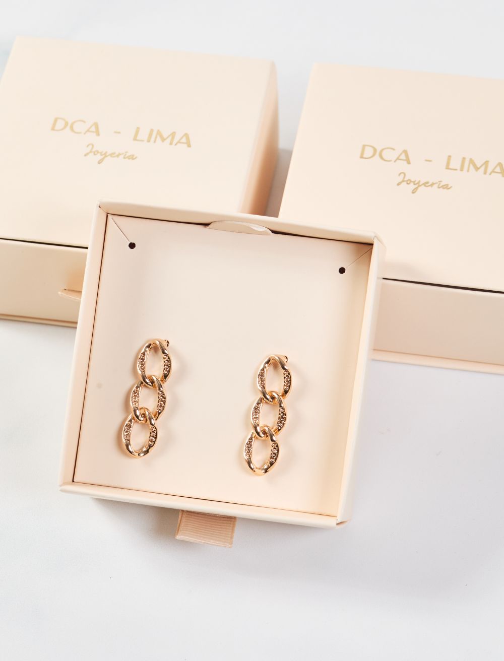 • Aretes con forma de eslabón dorado
