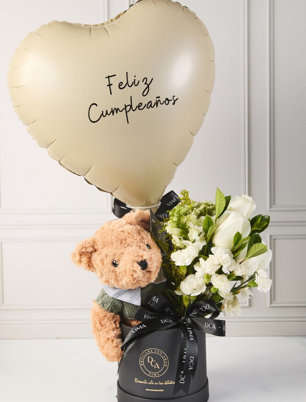 Un detalle pensado para llenar de alegría el día de esa persona favorita. Este box une la pureza de nuestras flores blancas con la ternura de un osito cumpleañero para crear una sorpresa completa, dulce y llena de buenos deseos. Es la forma perfecta de decir «Feliz Cumpleaños» con un regalo que dice más que mil palabras.