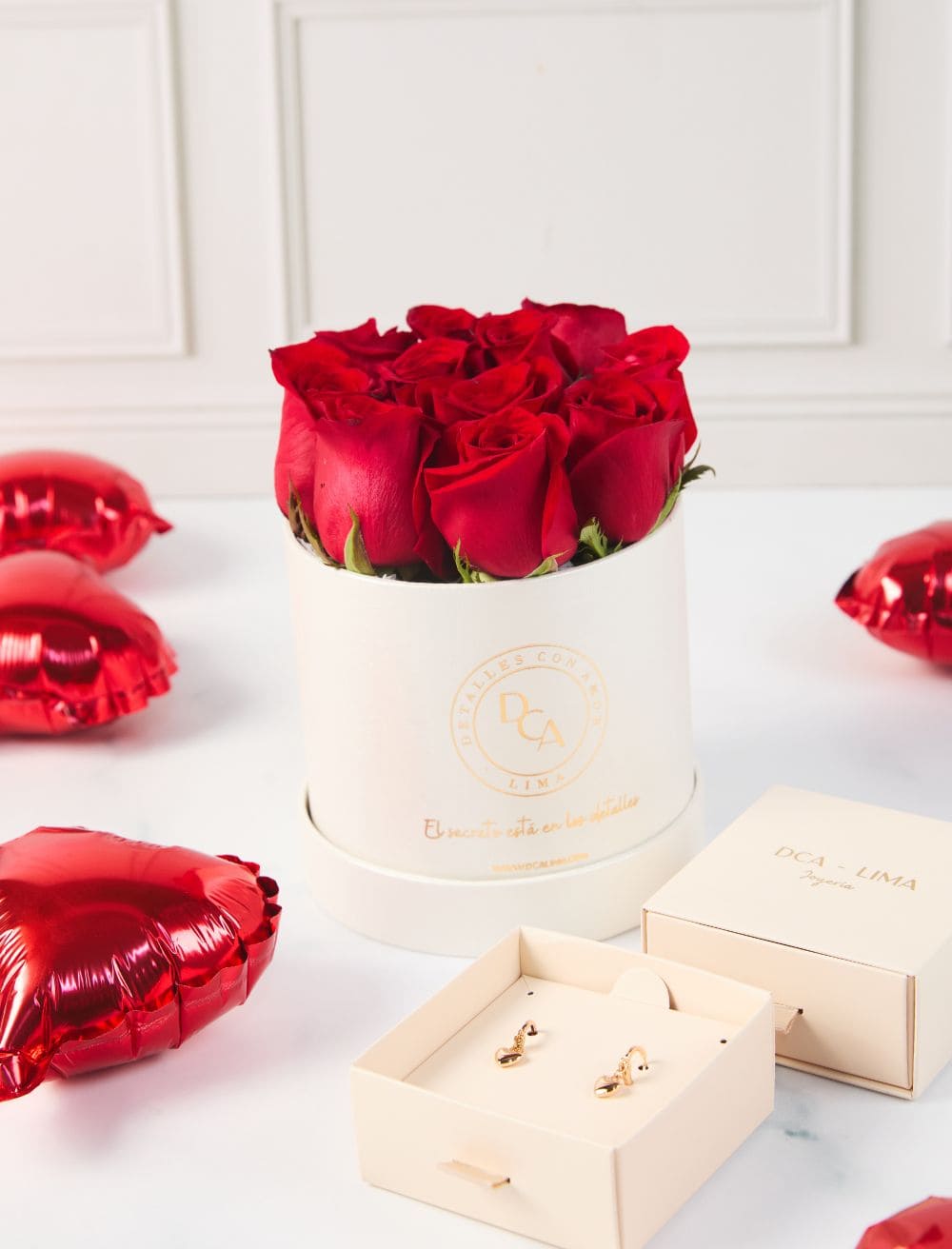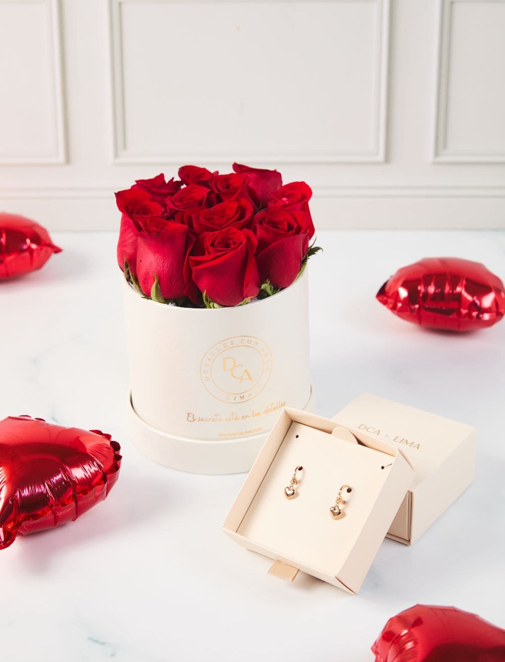 El Box Pack Petit y Aretes es la elección ideal para quienes buscan sorprender con un regalo que perdura. La frescura y pasión de las rosas rojas naturales se complementa perfectamente con el brillo de una joya delicada, creando una experiencia de lujo en un formato elegante y compacto.