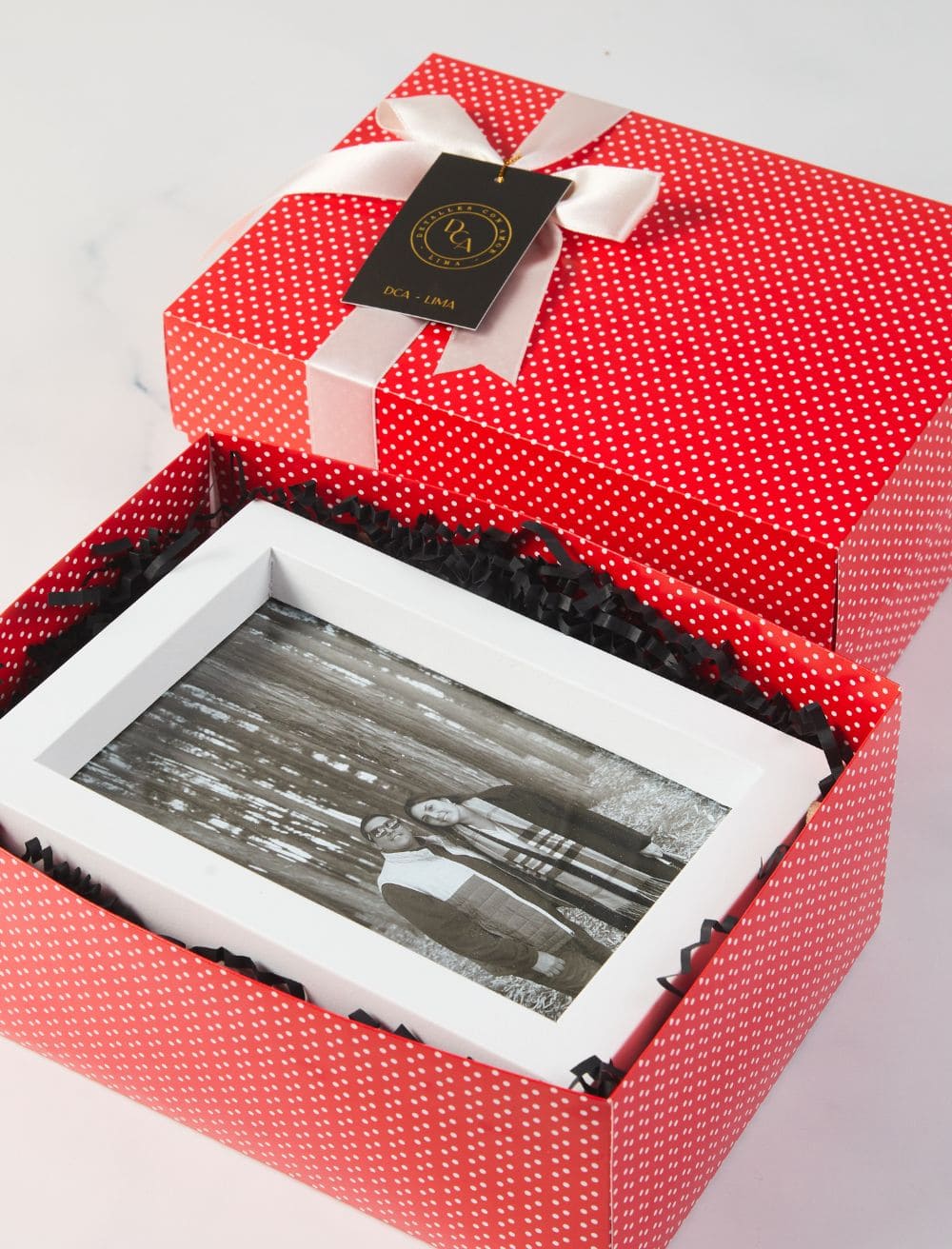 A veces, la sencillez de una imagen lo dice todo. El Gift Foto Recuerdo San Valentín se enfoca en lo más importante: ustedes. Presentado en una impecable caja de diseño minimalista con detalles en rojo, este box destaca por un portarretrato clásico que rinde homenaje a esa fotografía que define su relación. Es el detalle ideal para un escritorio o mesa de noche, manteniendo siempre presente ese instante de felicidad compartido.