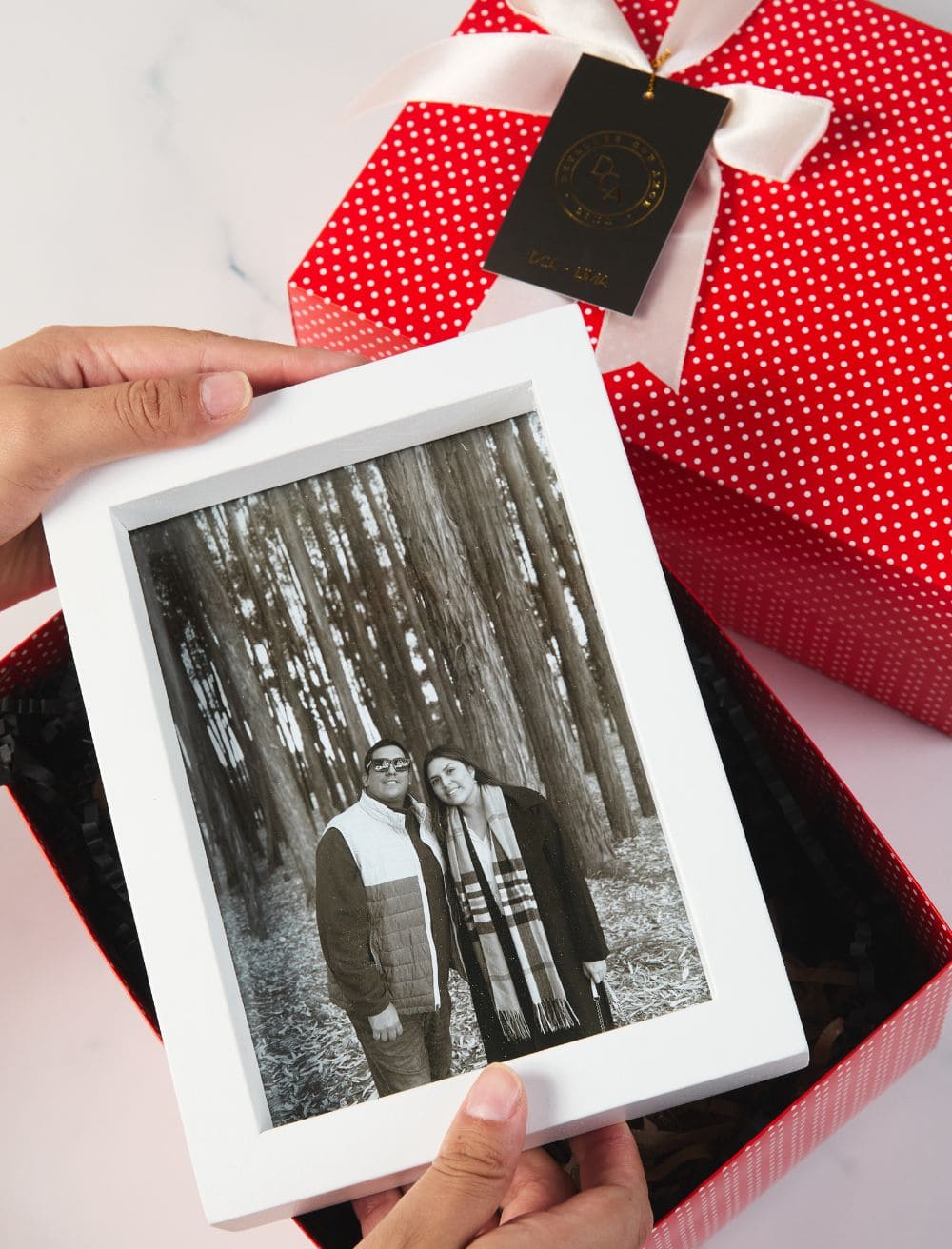 - 1 Cuadro blanco 16×21 cm de madera personalizado con fotografía.