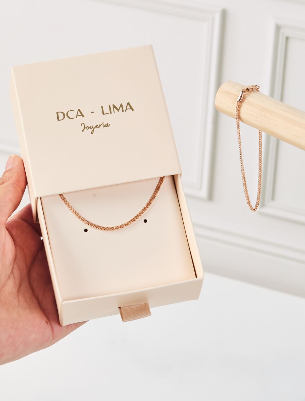 • Cadena fina y resistente en tono dorado 60cm.