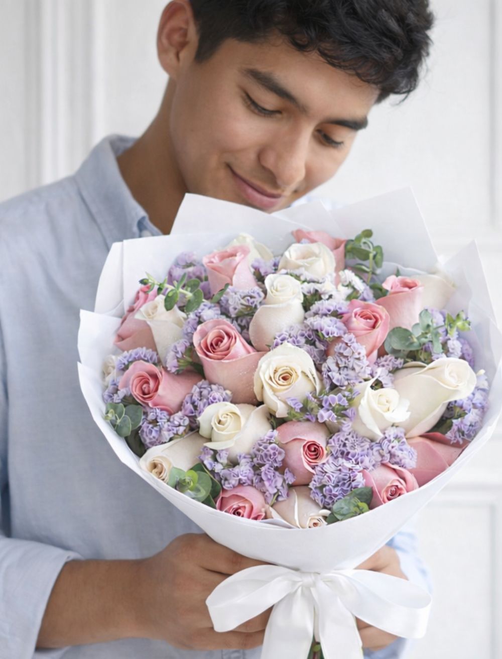 24 Rosas entre Rosadas y Blancas, siempre viva naturales.