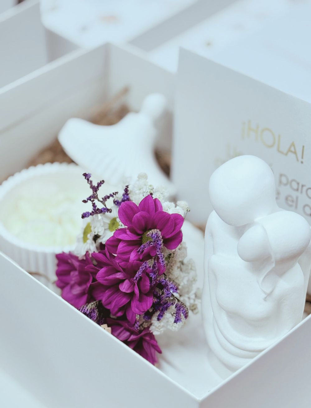 - Caja blanca minimalista con lazo decorativo
